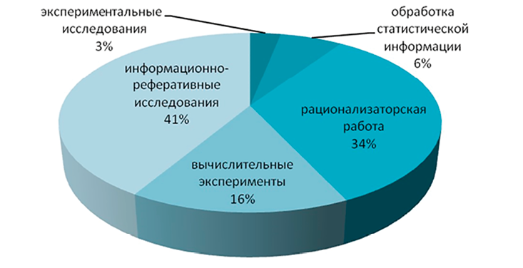 Незначительное количество оставшихся работ (3 %) было посвящено экспериментальным исследованиям.