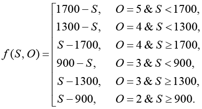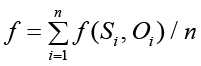 Поскольку числовое значение на выходе крайнего правого нейрона, обозначаемое S, однозначно определяется из совокупности весов дуг, обозначаемой W, и m входных значений НС, целевая функция может быть выражена как усредненное по всем студентам значение табличной функции от значения Si на выходе крайнего правого нейрона и оценки Oi, полученной студентом по дисциплине «Базы данных»: