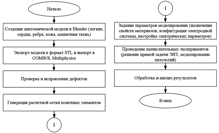 Для моделирования ЭИТ-исследования реализован алгоритм, изображенный на рисунке 1.