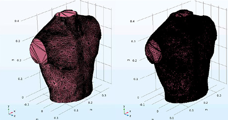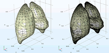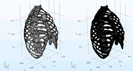 2) экспортировать геометрию органов средостения человека в формат STL и импортировать в среду COMSOL Multiphysics, что позволит разработать для каждой 3D-модели органов средостения конечно-элементные объекты (внутренние структуры);