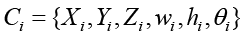 где Xi, Yi, Zi – координаты центра ячейки; wi, hi, – размеры в плоскости стола, θi – ориентация.