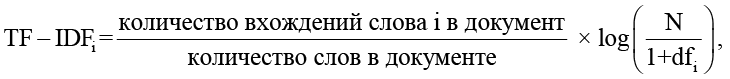 где N – количество документов в наборе данных, df – количество документов, в которых есть слово i.