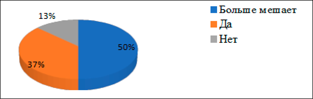 Результаты исследования ответов обучающихся на вопрос «Помогает ли Вам участие в проекте в написании курсовой?» представлены на рис. 6.
