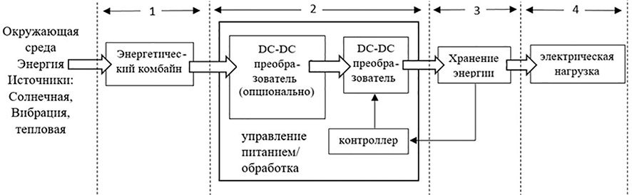Типовая архитектура системы сбора энергии (Energy Harvesting System) включает четыре фундаментальных компонента, образующих последовательную цепь преобразования и управления энергией (рис. 2).