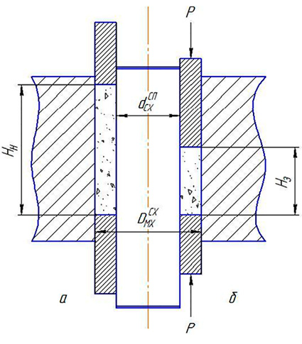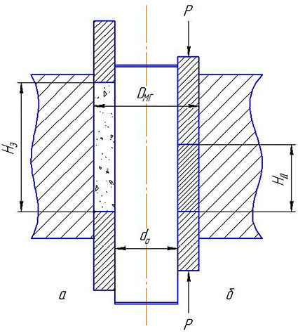 Рис. 3. Схема ДГП втулки: а) положение перед началом ДГП; б) положение в конце ДГП Примечание: составлен авторами по результатам исследования