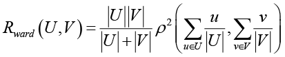 |U|, |V| – количество объектов в кластерах U, V;
