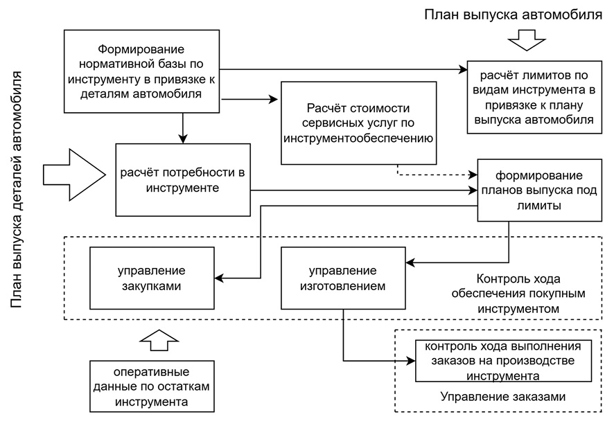 Для разработки организационно-технической модели необходимо решить следующие задачи: анализ роли инструментообеспечения в структуре технологической подготовки производства; формирование принципов комплексности и центра ответственности в управлении инструментальным хозяйством; разработка методических подходов к выбору инструмента, в том числе оценке экономической эффективности технологических решений; унификация и стандартизация технологической оснастки и инструмента за счет унификации технологических проектных решений в системе автоматизированного проектирования металлорежущего инструмента (САПР); оценка производственных и экономических эффектов внедрения автоматизированных систем проектирования и управления оборотом инструмента.