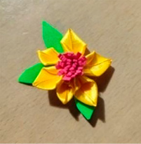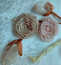 На данном этапе исследования обучающимся предлагалось из атласной ленты, с применением декоративных элементов (бусин, бисера, пайеток, пуговиц и т.п.), создать дизайнерский цветок для украшения одежды. Примером выполнения служат работы обучающихся 5 и 6 классов (рис. 1).