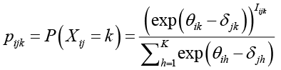 где k = 1, …, K – номер градации оценки в политомической шкале,