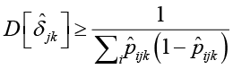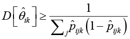которые определяют нижнюю границу дисперсий соответствующих оценок параметров. Для вычисления дисперсий индикаторов используем оценки вероятностей , вычисленные по оценкам латентных параметров. В результате получаем неравенства