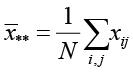 Пределы суммирования не указаны, так как обучающиеся могут иметь оценки не по всем дисциплинам. Суммирование по i, j подразумевает использование всех оценок, суммирование по i – использование оценок i-го обучающегося, суммирование по j – использование оценок j-го экзамена.