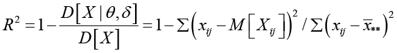 который использует сумму квадратов отклонений оценок от соответствующих математических ожиданий. Если бы оценки отклонялись от математического ожидания незначительно, то коэффициент детерминации был бы близок к единице. Однако это не происходит в силу большого количества случайных факторов, влияющих на процедуру оценивания. Для анализируемого списка оценок коэффициент детерминации составил R2 = 0,5916. Это говорит о том, что модель определяет оценку на 59%, а случайное влияние составляет 41%. Вполне возможно, к случайному влиянию будут отнесены закономерности, которые модель не учитывает. Математическое ожидание суммы квадратов отклонений