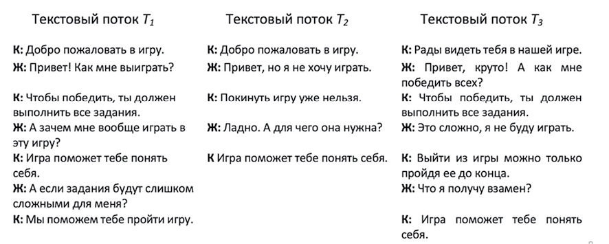 Рис. 2. Фрагменты текстовых потоков T1, T2 и Т3 Источник: составлено авторами
