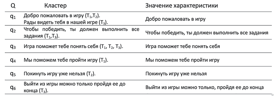 2. Для каждого кластера создать точную по смыслу формулировку характеристики.