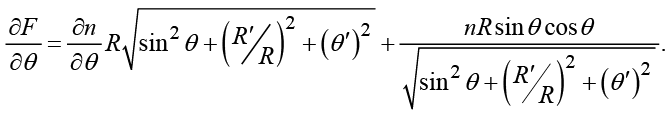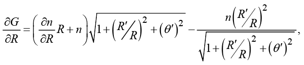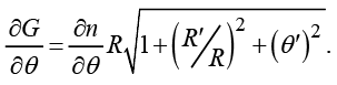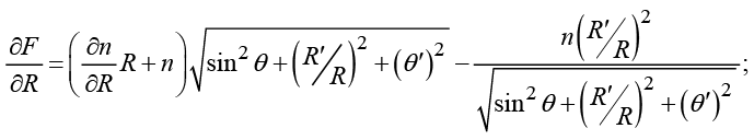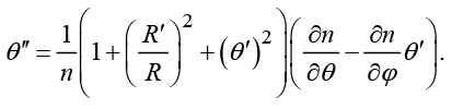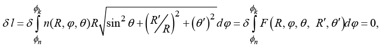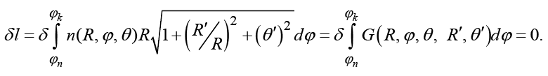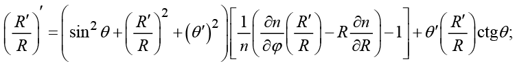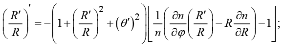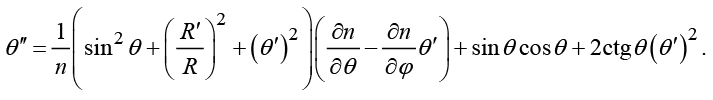 Проводя аналогичные аналитические преобразования, что и при выводе (7), получим систему лучевых уравнений в квазисферической системе координат. С учетом упрощенной записи элемента дуги dS вариационный принцип (2) принимает вид