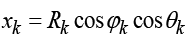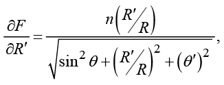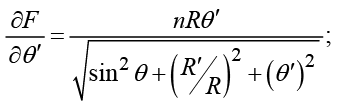 где R, φ, θ – соответственно радиальная, азимутальная и полярная угловые координаты луча, выражение (1) можем записать в виде