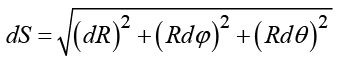 где δl – вариация оптического пути распространения; n – показатель преломления космической среды; dS – элемент дуги. Учитывая, что dS в случае сферической системы координат имеет вид