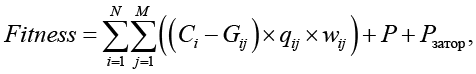Целевая функция (fitness) определяется как сумма двух ключевых компонентов: суммарной задержки транспортных потоков и штрафа за рассинхронизацию светофоров. Суммарная задержка рассчитывается по формуле