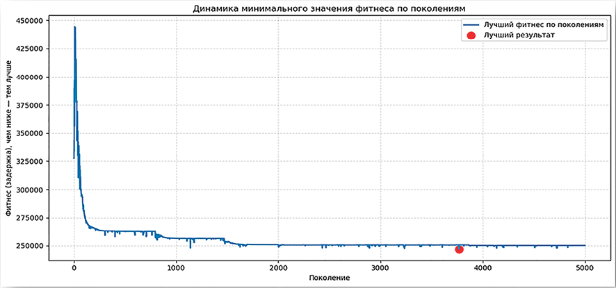 Рис. 1. Динамика минимального значения фитнеса по поколениям Источник: составлено авторами