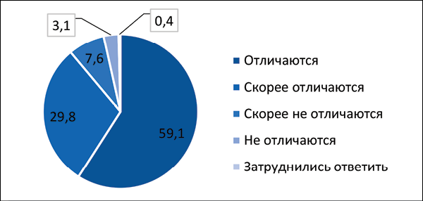 Большинство учителей, принявших участие в опросе, отметили варианты ответа «отличается» и «скорее отличается» – 1469 человек, что составляет 88,9% от общего числа опрошенных. Отсутствие отличий в педагогической технике при взаимодействии с различными участниками образовательных отношений отметили в общей сложности 177 (10,7%) опрошенных, а 7 человек (0,4%) – затруднились с ответом. Примечательно, что среди тех, кто выбрал варианты ответа «скорее не отличается» и «не отличается», большую часть составляют опытные учителя, имеющие стаж работы свыше 20 лет (97 чел. – 5,9%), а также от 10 до 20 лет работы (43 чел. – 2,6%). Это может свидетельствовать о том, что опытные учителя пользуются своей педагогической техникой автоматически и меньше анализируют процесс и результат её реализации в своей работе.