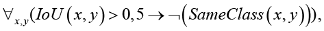 где IoU(x, y) – метрика перекрытия между боксами x и y, SameClass(x, y) – предикат совпадения классов.