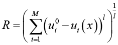 В этой формуле R – дистанционная метрика, расстояние от u(x) до u0.