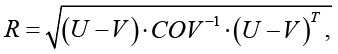 где COV – ковариационная матрица. Расстояние Махаланобис – это мера расстояния между двумя случайными точками U и V.