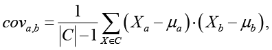 Элементы ковариационной матрицы cova,b рассчитываются по формуле