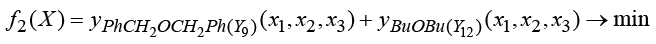 – Вектор варьируемых параметров X=(x1, x2, x3), где x1 – температура реакции, T; x2 – мольное соотношение реагентов бутилового спирта к бензиловому спирту; x3 – время проведения реакции.