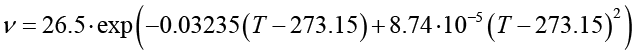 Температурная зависимость динамической вязкости μ(Т) задается посредством аппроксимации экспериментальных значений с применением метода наименьших квадратов и подбора вида аппроксимационных функций, а также методов регрессионного и интерполяционного анализа.