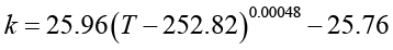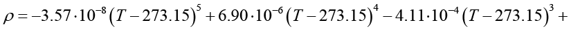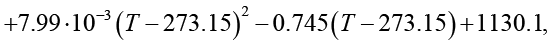 Полученные зависимости обеспечивают погрешность не более 0,4 % относительно данных, приведенных в табл. 1. При выполнении расчетов с использованием выражений (25)–(30) температура T должна быть представлена в градусах Кельвина. Перевод значений температуры из термодинамической шкалы Кельвина в шкалу Цельсия осуществляется в соответствии с соотношением, учитывающим разность, равную 273,15 градуса.