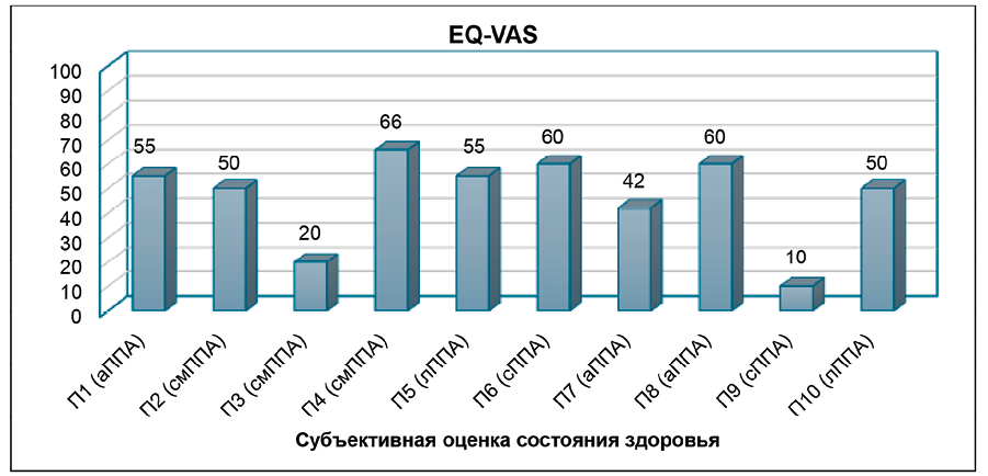 Рис. 2. Результаты исследования качества жизни у пациентов с ППА по опроснику EQ-5D-3L Источник: составлено авторами по результатам данного исследования