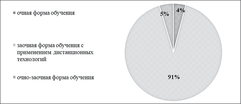 Рис. 2. Распределение предпочтений по формам обучения для слушателей программ повышения квалификации естественно-научного факультета ЮЗГУ Источник: составлен авторами по результатам данного исследования