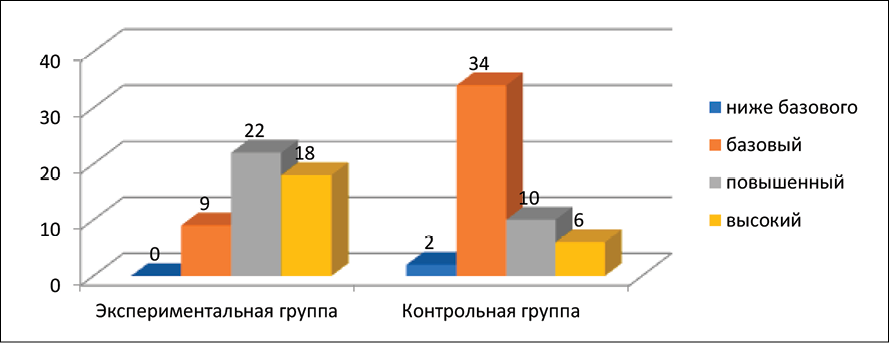Результаты формирующего эксперимента продемонстрировали кардинальные изменения в экспериментальной группе, которые отражены в табл. 2.