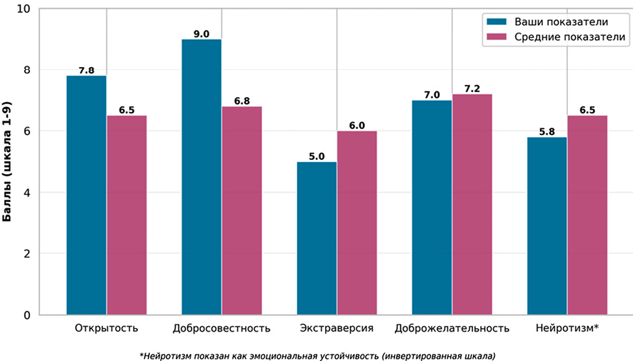 Рис. 5. Профиль личности по опроснику BFI-2 Примечание: составлен авторами по результатам данного исследования