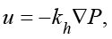 где u – скорость фильтрации, м/c; ∇P – гидравлический градиент, м/м; kh – коэффициент фильтрации, м/с.