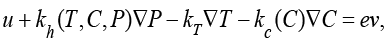В неизотермических условиях выражение закона Дарси – Герсеванова [7] для динамики солевых растворов в пористой среде имеет следующий вид: