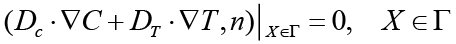 Также непроницаемость грунта может быть обоснована расположением слоев соли. Тогда граничное условие для концентрации химических веществ будет иметь вид: