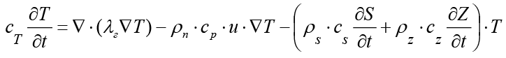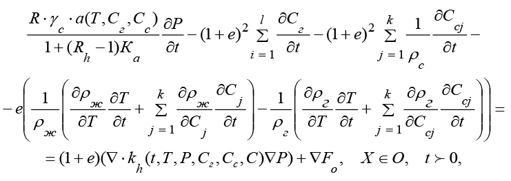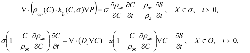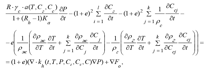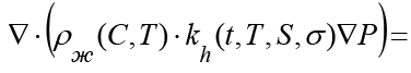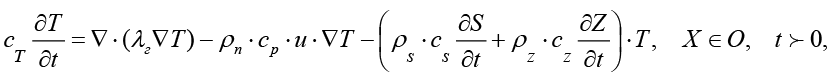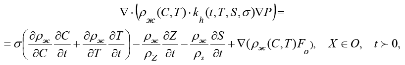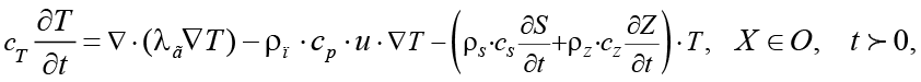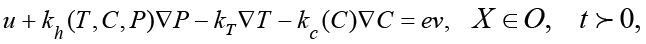2) уравнения теплопереноса – с учетом термодинамических факторов, а также влияния теплоёмкости и теплопроводности; с учетом связи переноса солей и химико-термическими эффектами на процесс фильтрации;