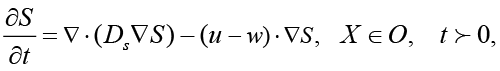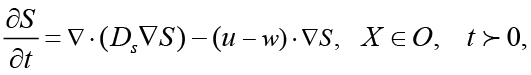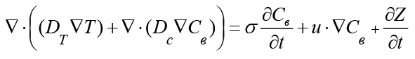 Уравнение переноса солей в жидкой или твердой среде в тензорной форме имеет следующий вид [12]: