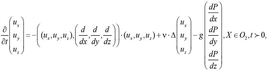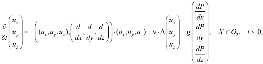 Концентрация твердых частиц в области размыва О достаточно мала, поэтому их влияние на вязкость и движение пульпы в этой области считается незначительным. В результате этого процесс движения пульпы в области размыва можно моделировать с использованием уравнений Навье – Стокса [15]: