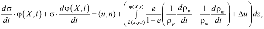 Изменения в расположении поверхности впадины также могут возникать из-за уплотнения, разбухания грунта под ней. Обобщенное граничное условие для просадки грунта в результате его уплотнения учитывается в работе [16] и имеет вид: