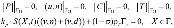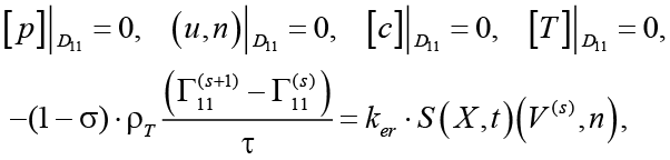 4. Разработка сопряжённых условий: учет зависимости e, ρж, ρг от физико-химического состояния среды на границе Гr и в области размыва.