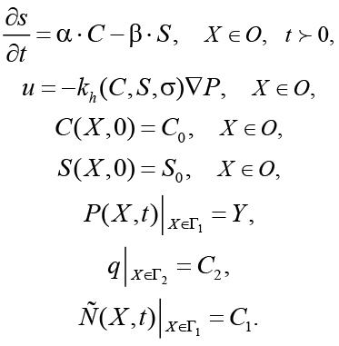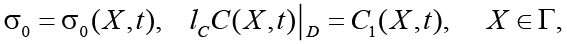 где Р1 (X,t) – заданная функция давления, Па; C1 (X, t) – заданная функция концентрации химических веществ в грунте, кг/кг.