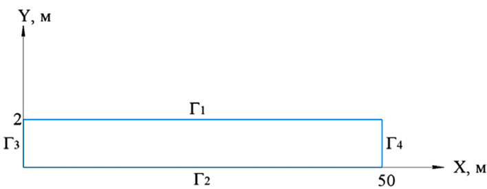 В авторской математической модели учтен принцип работы системы фильтрации Биоплато [10] с каменной засыпкой (рис. 2а). Загрязненная вода поступает на поверхность Биоплато через перфорированные трубы Г1, расположенные на входной границе. Несмотря на подачу воды в водоводы под давлением, после выхода из них она свободно просачивается в пористый грунт. Границы Г3 и Г4 – непроницаемы. Отфильтрованная вода удаляется через перфорированные трубы, расположенные на выходной границе Г2.