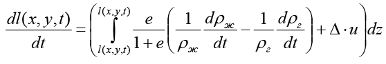 где z = l (x, y, t) – фиксация положения верхней подвижной границы грунта; z = L (x, y, t) – фиксация положения нижней подвижной границы грунта.