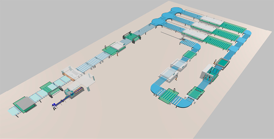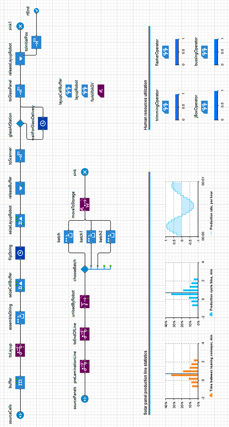 Рис. 3. 2D-визуализация модели цифрового двойника по изготовлению солнечных панелей Источник: https://cloud.anylogic.com/model/29d54a61-aaac-4c47-8e50-941c0f5bb36e?mode=SETTINGS