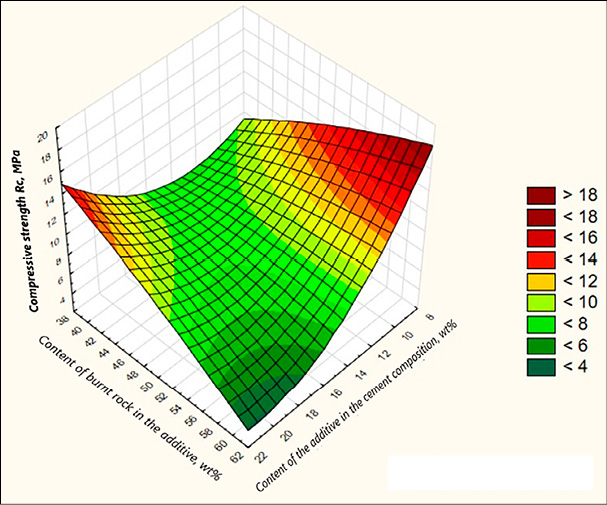 Результаты экспериментальных исследований и математического моделирования позволили установить характер влияния комплексного модификатора на основе горелых пород и гипса на физико-механические характеристики цементного камня.